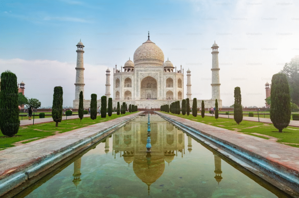 The Taj Mahal stands as an everlasting symbol of love and one of the world’s most admired structures. This UNESCO World Heritage site should be visited during sunrise or sunset for the best photos and fewer crowds. Reach Agra easily by train or road from Delhi—prefer early morning or late evening visits for a magical experience.